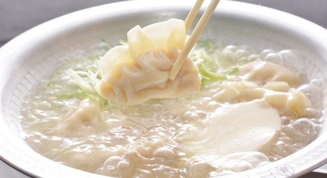 名古屋コーチンを使った自家製の鶏ガラスープで餃子を炊いています。