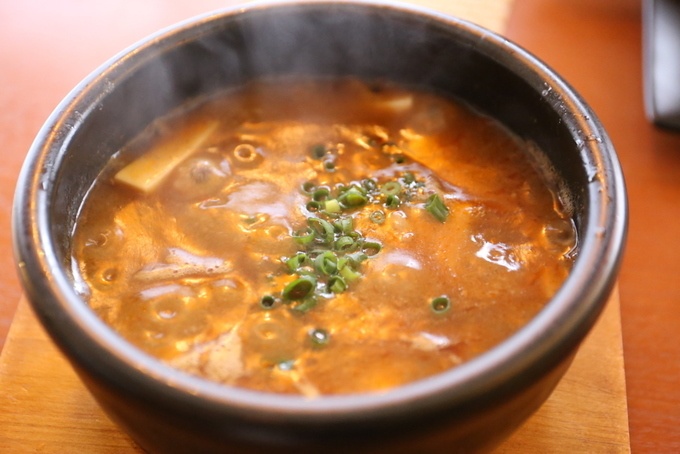レンゲの中で濃厚で甘みのある台湾風醤油ダレや黒酢を絡めていただきましょう。