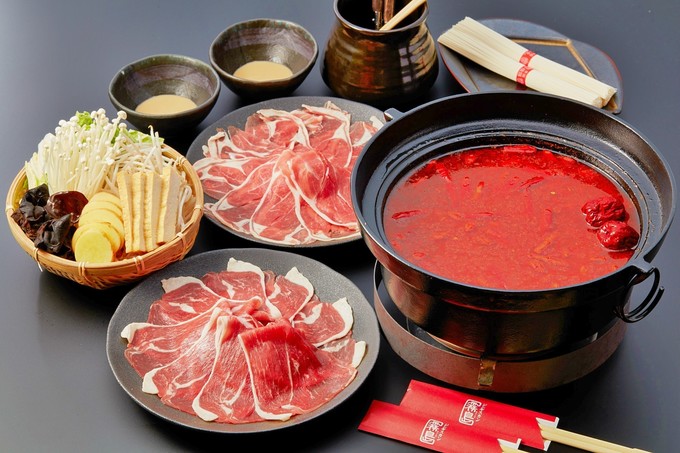ラム肉の様々な部位を辛味のある麻辣スープにくぐらせて楽しむことができます。