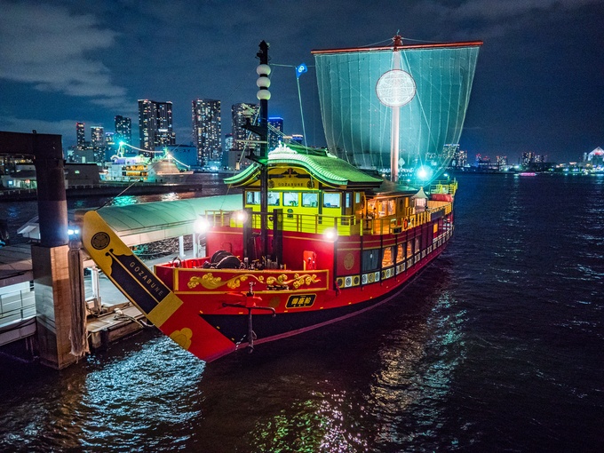 日の出乗船場からスタートし、東京湾から名夜景スポットを巡るド派手屋形船『安宅丸』。実はこちら、船内からサービスに至るまで豪華絢爛・お江戸の贅を尽くしたエンターテイメント性あふれるスーパー屋形船なんだとか!その真相を確かめるべく、『安宅丸』に早速潜入してきちゃいました!