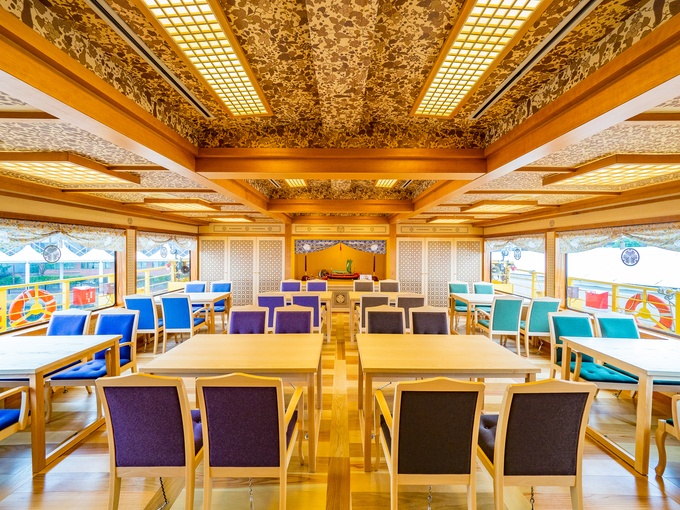 『安宅丸』そのもの、マグロづくしのこだわりのお料理、きらびやかな船内、