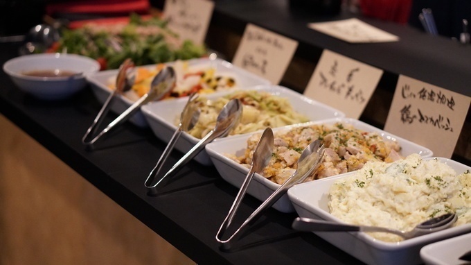 料理は1,000円で食べ放題です!ローストビーフや、ムール貝やパスタ、サラダにカレーなど…1,000円食べ放題とは思えない料理の数々を出来立てでの状態で提供します!