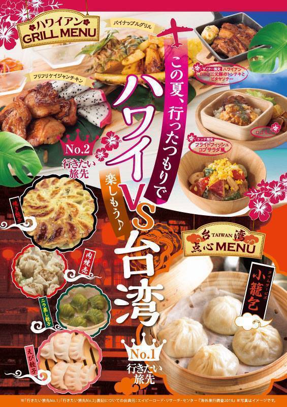 2017年7月11日~8月31日の期間限定で、ニラックス社が運営する総合ブッフェが楽しめるお店『グランブッフェ』『フェスタガーデン』『アポロ』『ガーデンプランツ』『デリシュー』『パンチュール』『パンパレット』『ブルーム』『アソート』34店舗にて、「この夏行ったつもりで ハワイVS台湾フェア」が開催されます。
