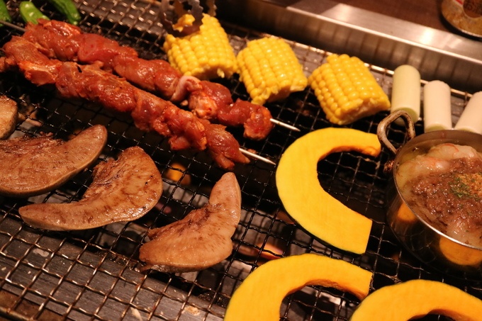 牡蠣、海老、ラム串、ラムチョップ、野菜などを目の前の鉄板で焼いてBBQを楽しむことができます。調味料の持ち込みもOKです。