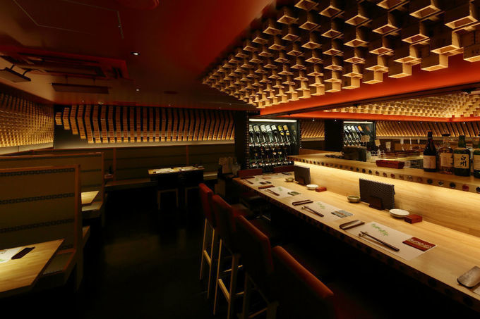 モダンなデザインの店内は日本を代表する店舗・インテリアデザイナー森田恭通氏のGLAMOROUSが手がけた空間です。