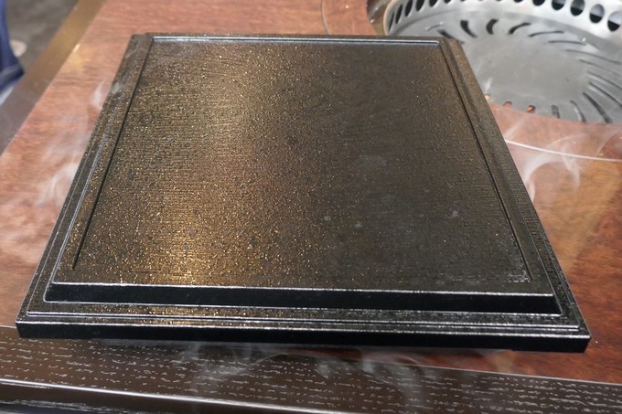 その後は、赤みを帯びた断面に軽く火が通るまで鉄板の上で焼いていきます。