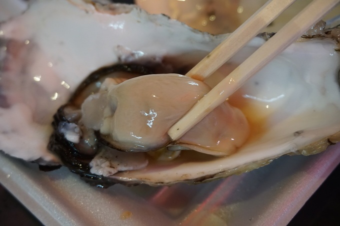 お店の店頭には牡蠣やウニ、ホタテなどが置かれていて、これらの海産物は買って家に持ち帰ることもできるし、その場でお酒のつまみとして食べることもできる。