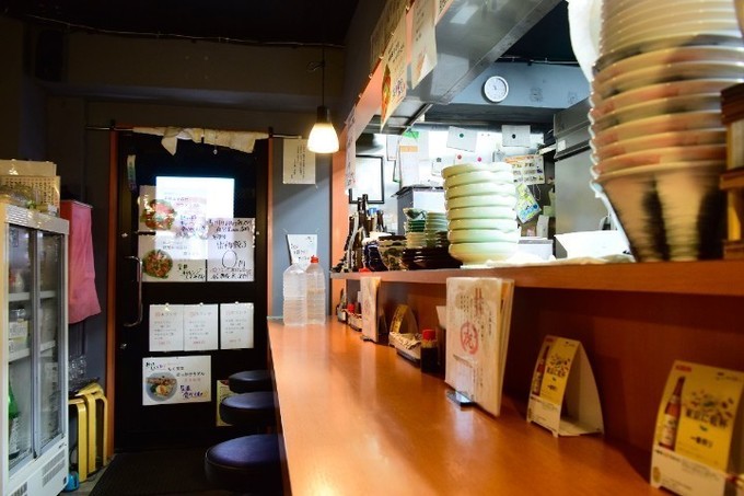 お店の扉を開くと、1階には店奥まで伸びるカウンター。その背中側には、二人用の小さなテーブル席が並びます。また、2階には個室(最大30名)も完備されています。