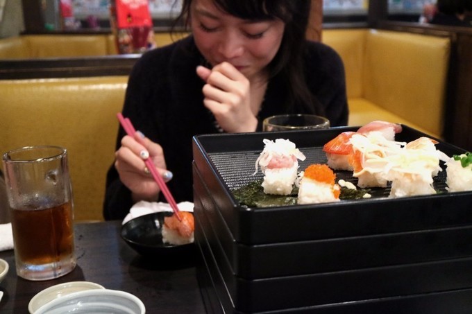 黙々とお寿司を食べ続ける編集部の大食い女子。彼女の勢いは止まりません。