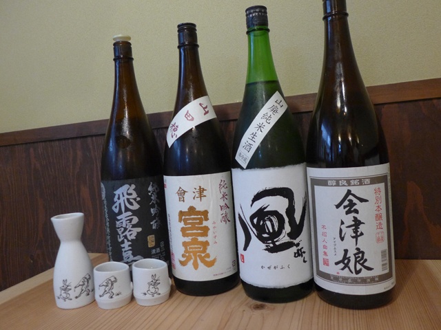 年内は福島県の日本酒が味わえる。鳥獣戯画が描かれた酒器が可愛い。