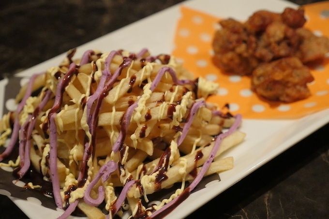 こちらもパーティーメニューでの大定番、フライドポテトにソースをかけて新たな味わいに仕上げた名付けて「魔女ポテト」。