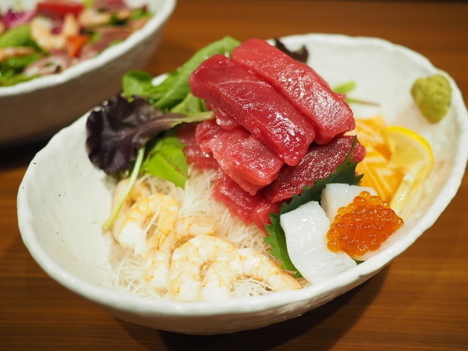 『ミライザカ』の常連さんの中でも人気度の高い「本まぐろの刺身」は、肉厚で味わいも濃厚!まるでトロを食べているかのような食感です。