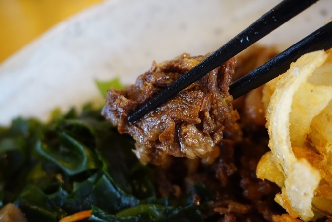 キャベツは見事なシャキシャキの食感。シャキシャキの食感のおかげでドンブリにメリハリが生まれます。