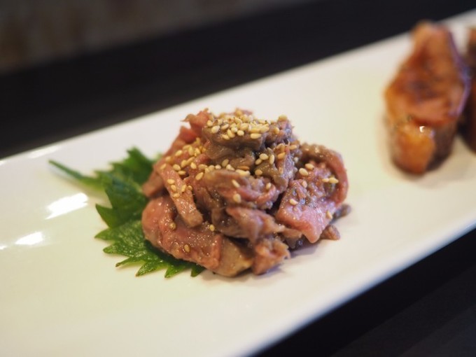 ごま油と醤油ベースのタレで味付けしている「柚子胡椒ユッケ」。