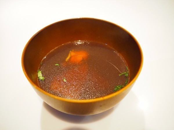 まず1品目は、「牡蠣と和牛のコンソメスープ」。