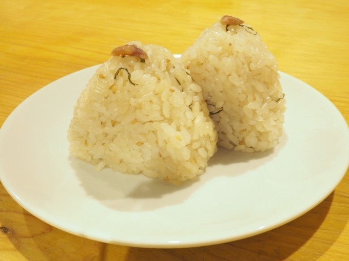 刻んだ大葉の香りの中にアンチョビの優しい塩気がアクセントになったおにぎりです。