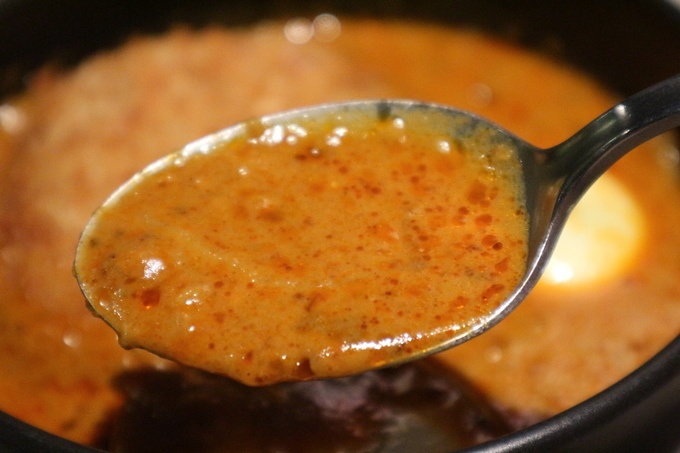 まずはルーからいただいてみると、キリっとしたスパイスの味わいによってシャープな辛さを感じます。