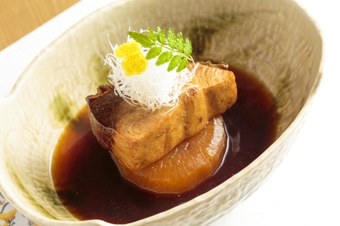 焼いたブリの粗と骨で出汁をとり、大根とブリを別々に煮込んだ特製の「ブリ大根」です。