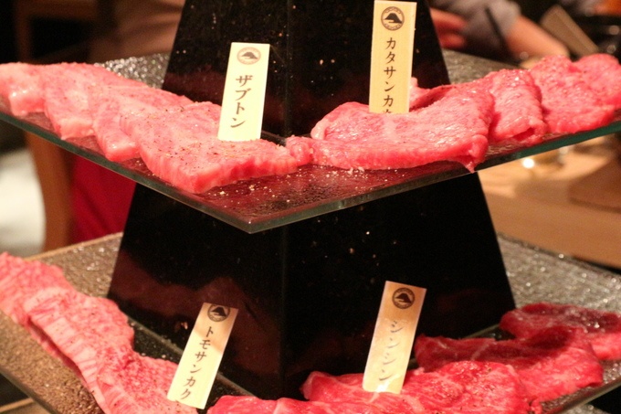各段に種類の異なるお肉が2種類づつ盛られているという、これぞまさに“富士肉”!