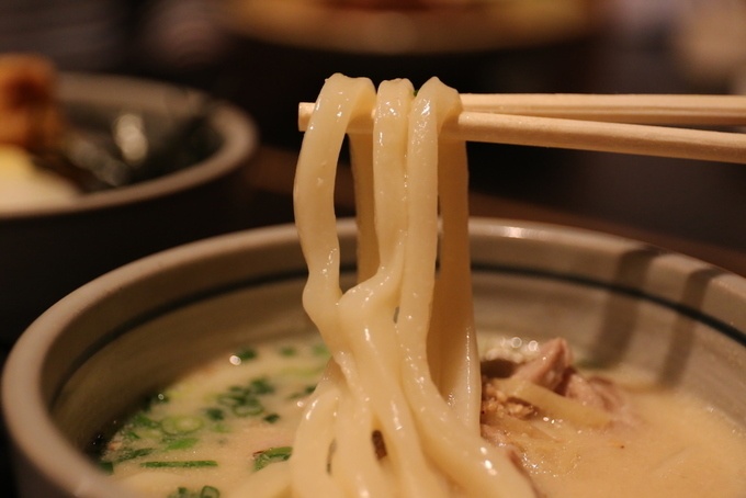 名物は「白肉うどん」豚骨ベースのトロッとしたスープが特徴
