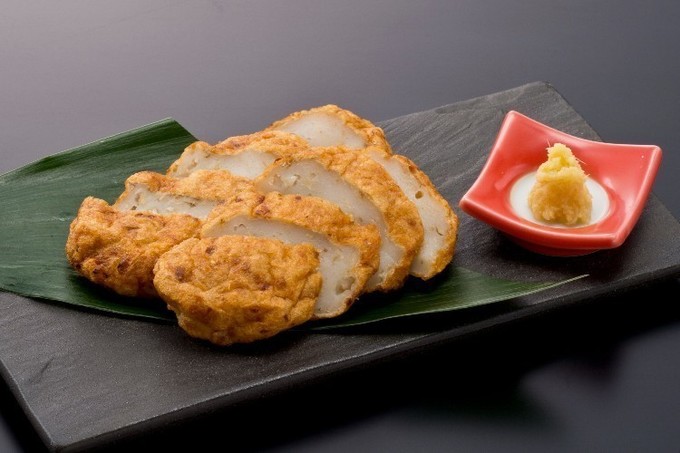 魚のすり身を練り上げ、野菜入りの手作りさつま揚げです。カラシをつけていただくのもいいですが、生姜を少しのせて味わうのもおすすめですよ。お酒と相性がいいので、おつまみとして頼みたいですね。