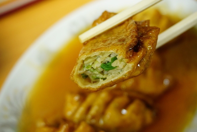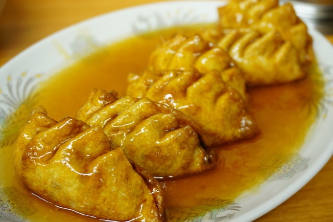 「揚げ餃子」の皮はかなり厚め。その為に、外側はカリッカリに揚げられていても皮の内側はモチモチの食感です。