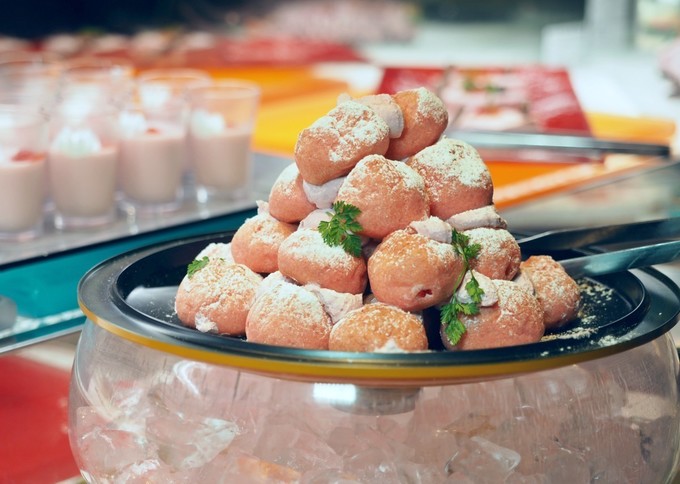 春らしくピンク色に染まったプチシュークリームを、タワー状に積み上げたメニューです。