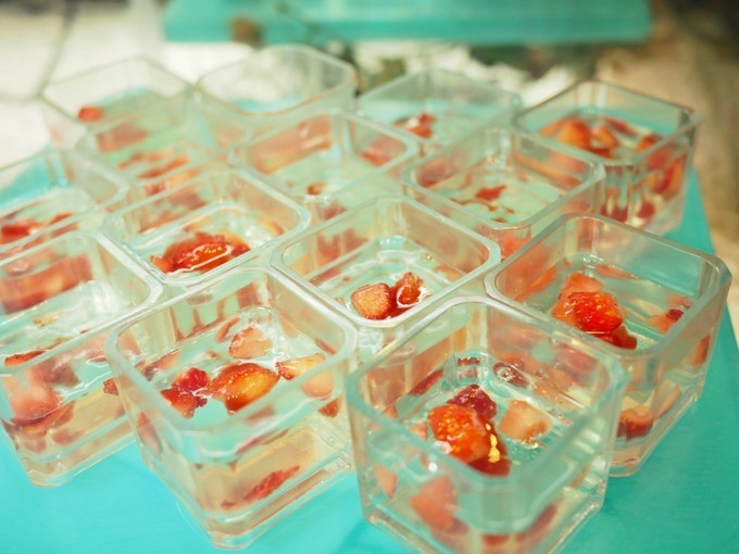 「苺の白ワインジュレ」はスッキリとした甘さと白ワインの芳醇な香りが楽しめます。