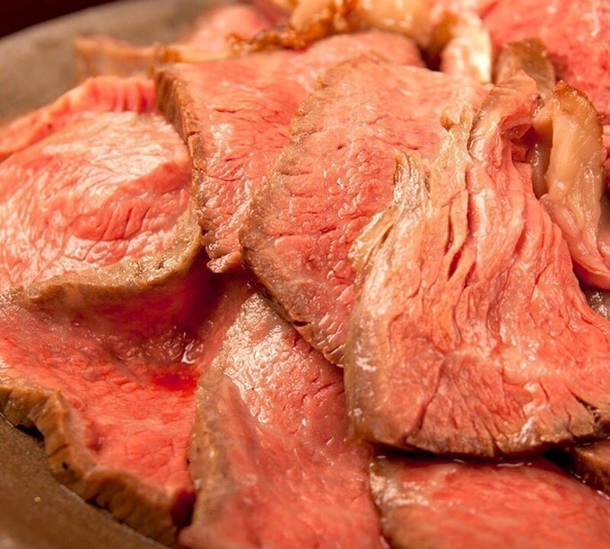 ローストビーフは、A5ランクにこだわった黒毛和牛を低温でじっくり調理して作った『原価ビストロBAN!』の人気メニュー。