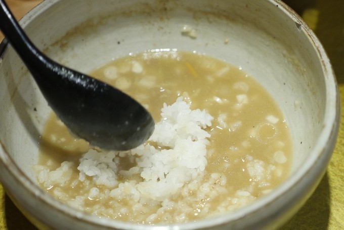 「自慢のスープを最後まで楽しんでほしいので、替え玉か雑炊をおすすめしています」とのことだったので、今回は雑炊をチョイス。