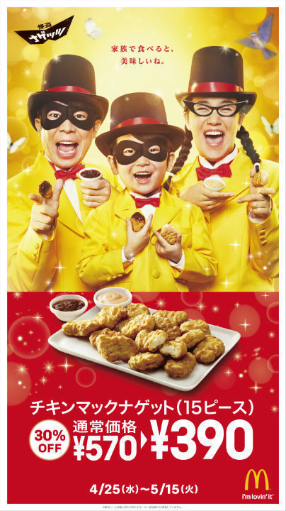 また、「チキンマックナゲット」と言えば、CMなどにも度々登場しているソースハンター「怪盗ナゲッツ」。今回のキャンペーンにも期間限定ソースを狙って、さまざまな場所に出没するようです。しかも今回は、家族総出の模様!?