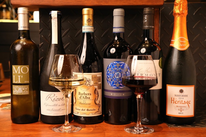 スパークリングワインに加え、赤と白など豊富に取り揃えています。