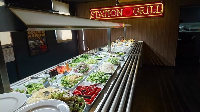 『ステーショングリル』では、プライムリブやステーキと一緒に楽しめる充実したサラダバーがあります。