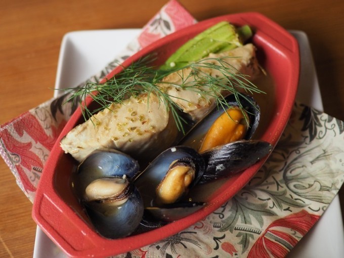 鯛から取った洋風ダシ「フュメ・ド・ポワソン」を使うことで、淡白な味わいの鰆に深みを与えています。