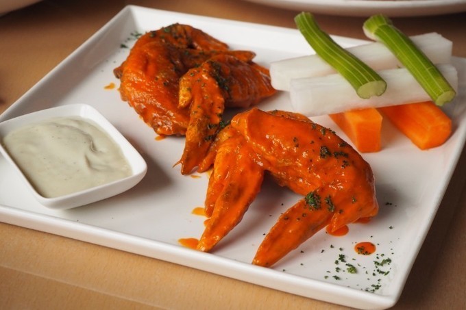 バッファロー、スイートチリ、柚子胡椒の3種の味が選べる「チキンウィング」。