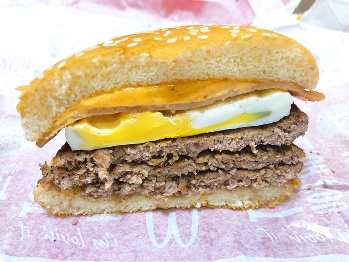 月見よりもパティが主役?!3枚のパティでボリューム感満点
