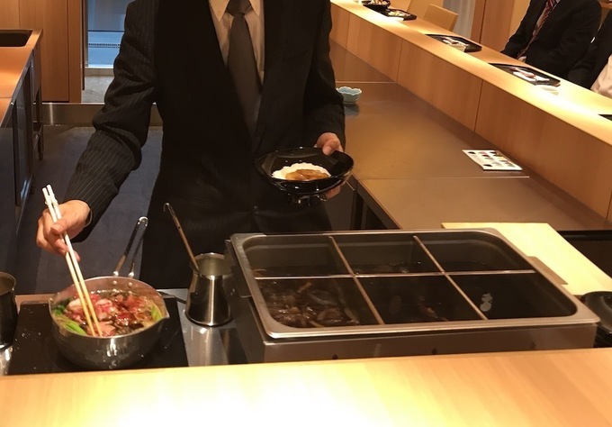特にお肉は長時間煮込むと固くなるので、提供直前に別鍋の割り下で調理します。
