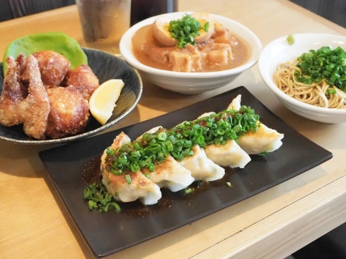 トッピングされているネギの香味で餃子の味が引き立ち、お酒とも相性抜群です。