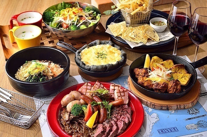 『GOO FOOD HALL』では、ステーキにスパイス料理、韓国料理まで楽しめるコースも用意されているんです。大人数での飲み会におすすめですよ!