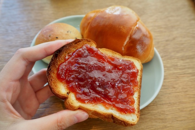トーストは焼き戻したあと、ジャムをたっぷりと塗っていただきました♪