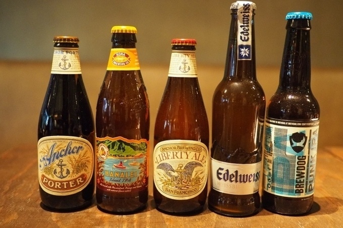 ボトルのクラフトビールは、30種類も用意されています。国産のものからアメリカ産、ヨーロッパ産からアジアのものまで幅広い種類が揃っていますよ。