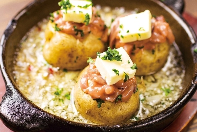函館発祥のソウルフードである「ホクホクじゃがバターと塩辛のアヒージョ」。