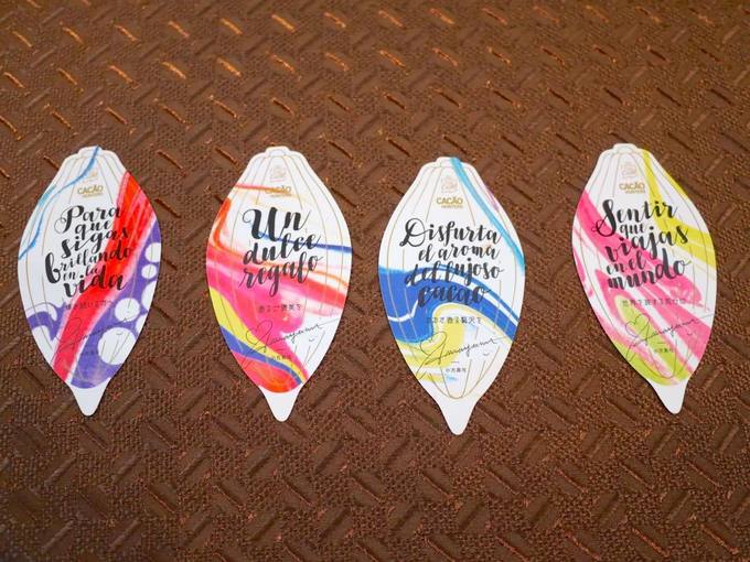 「カカオ香る至福のガトーショコラ」には、カカオハンター小方真弓さんからのスペイン語のメッセージがランダムに添えられています。