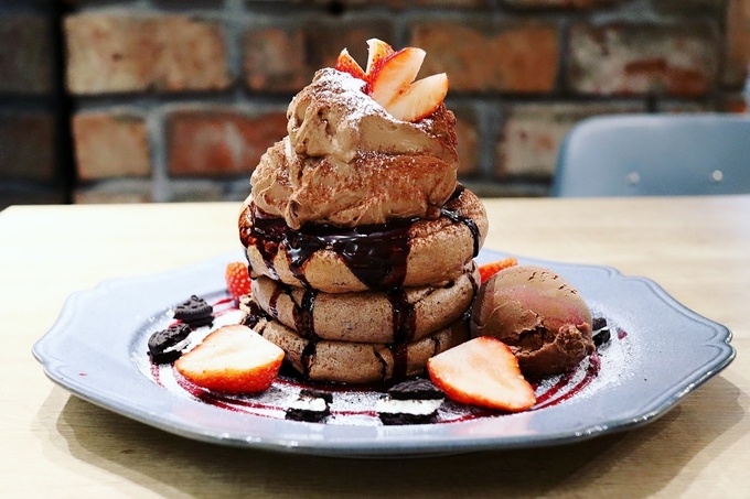 しっとりふわふわチョコレート生地とたっぷりクリームで大満足パンケーキ