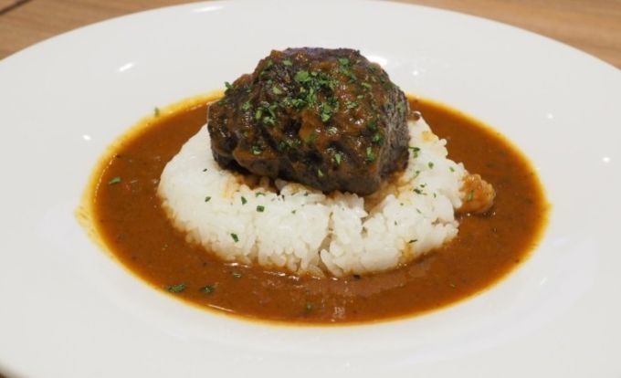 中でも終日楽しめる看板メニューが、見た目のインパクトも抜群の「牛ホホ肉のカレー」。