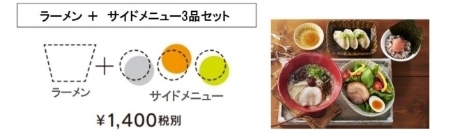 まず、試していただきたいのは、ラーメンを中心に2つのサイドメニューを楽しむスタンダードなセット。