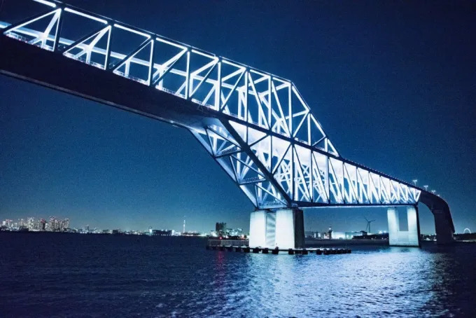 光り輝く橋の向こう側に、ぼんやりと灯りを放つ東京の夜景が。