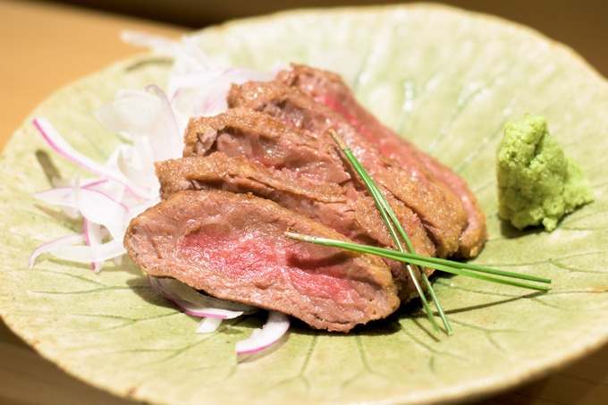 牛肉の一品料理なら、『根もと』が自信を持って勧めるのは宮崎牛です。