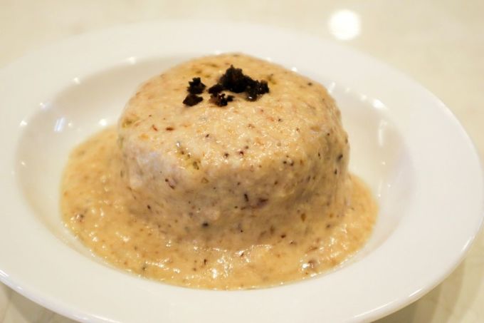 じっくりと煮込まれたっぷりと出汁つゆを吸った大根をイタリアン風に味わう「大根のポルチーニ茸ソース」。