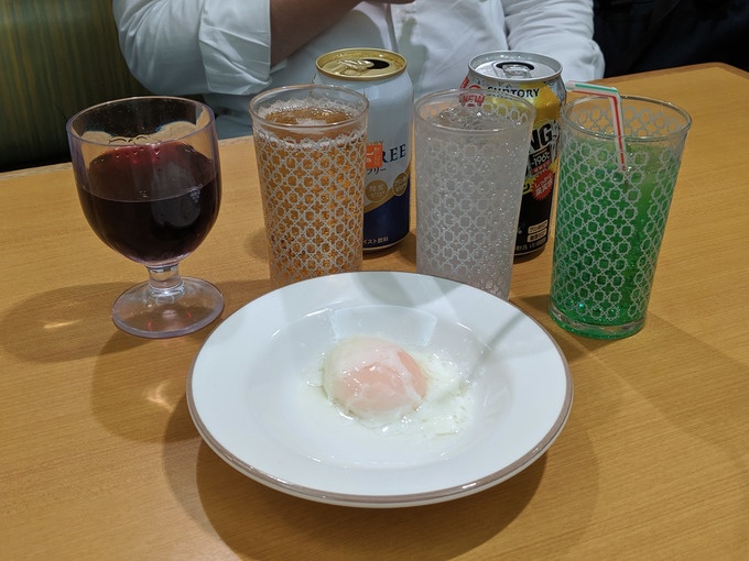 まさかの、ドリンク4種とトッピング用の半熟卵でした。